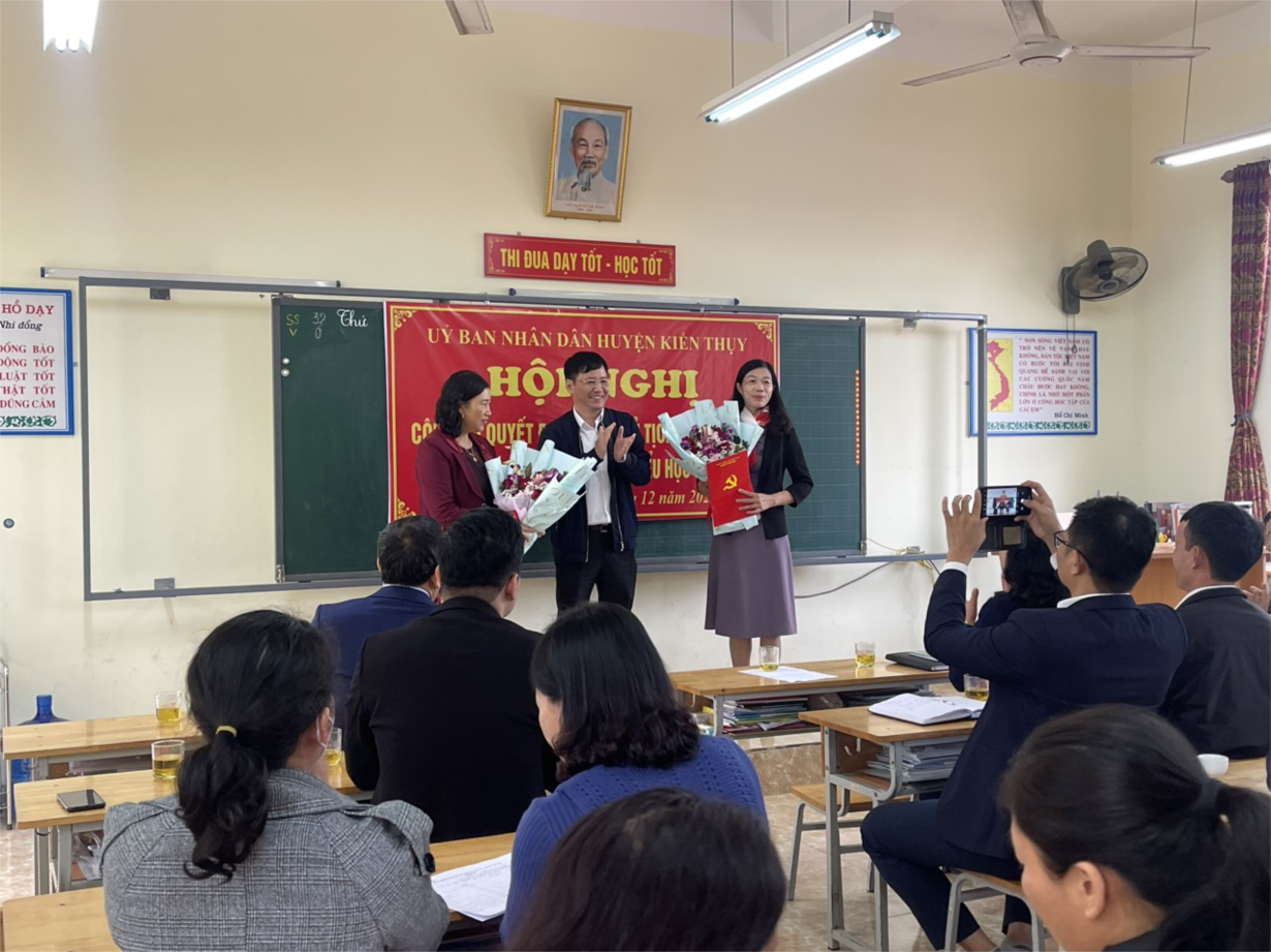 Thực hiện Nghị quyết của Ban Thường vụ Huyện ủy về công tác cán bộ trong nhà trường, ngày 04/12/2023 tại Hội trường Trường Tiểu học Ngũ Phúc, UBND Huyện Kiến Thuỵ tổ chức Hội nghị công bố Quyết định điều động và bổ nhiệm Phó Hiệu trưởng nhà trường.