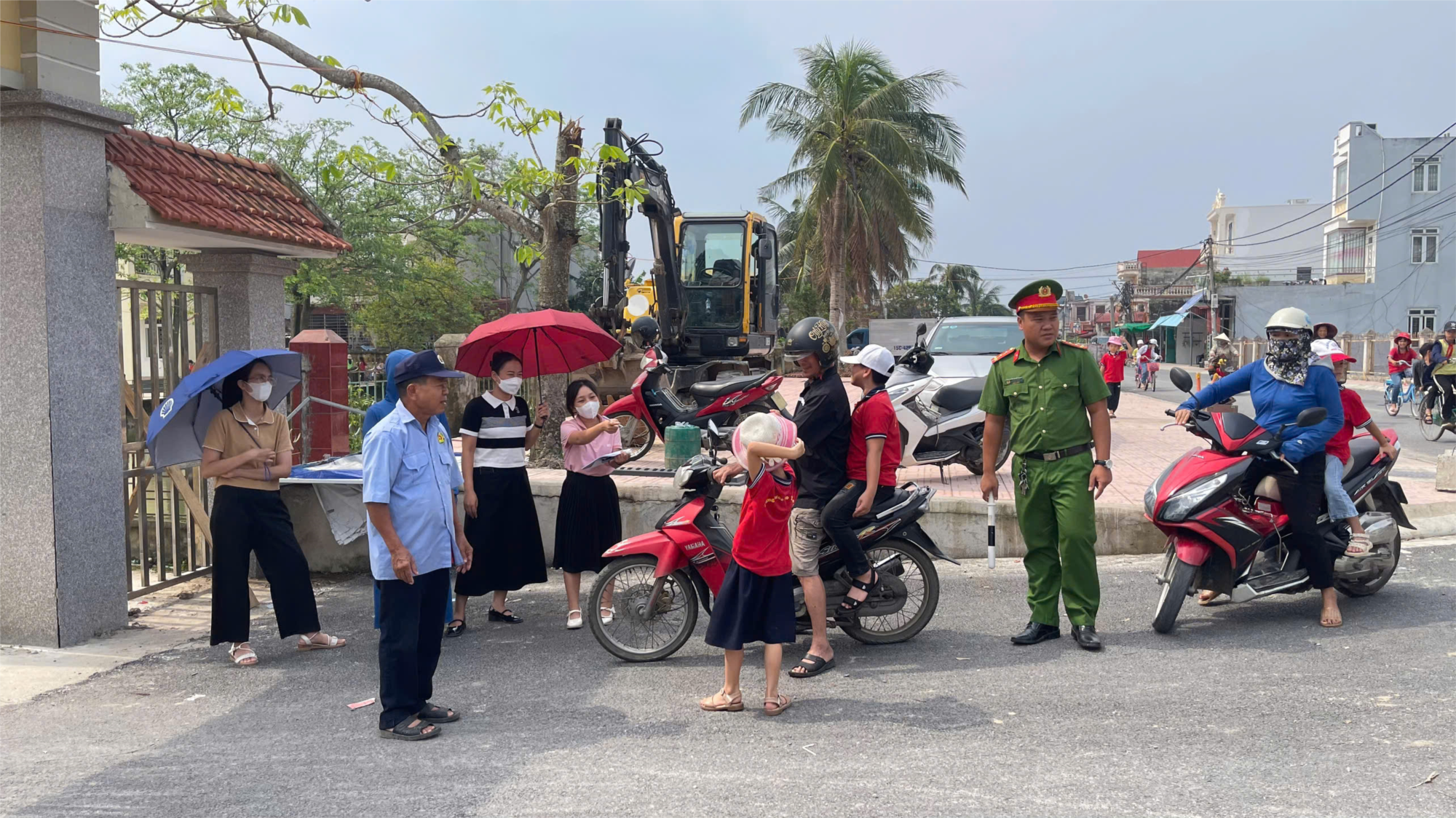 Chi đoàn Giáo viên trường Tiểu học Ngũ Phúc thực hiện tốt công tác đảm bảo An toàn giao thông trước cổng trường.