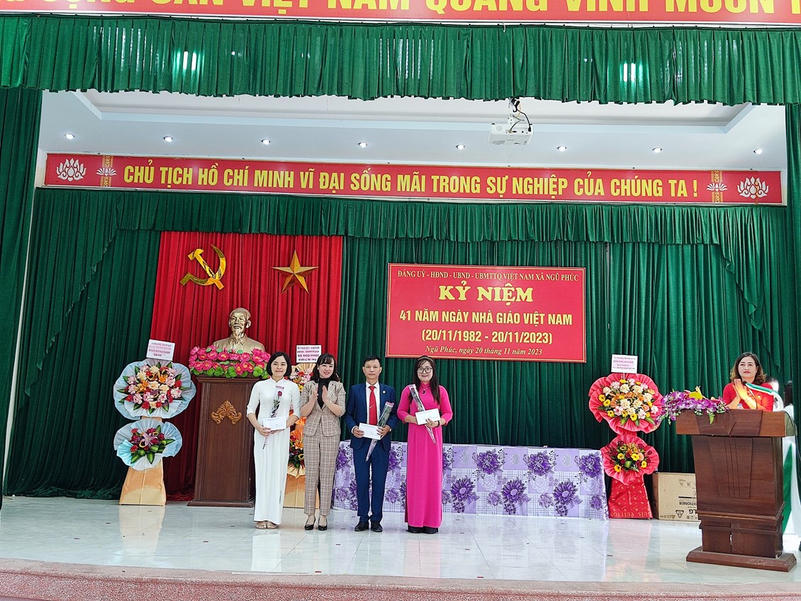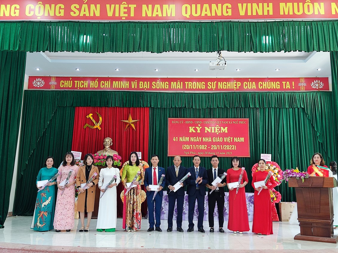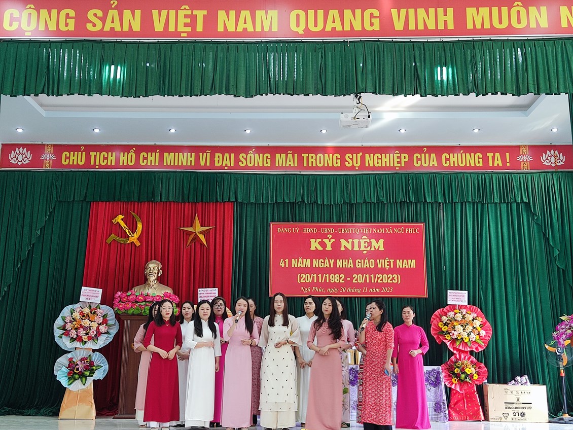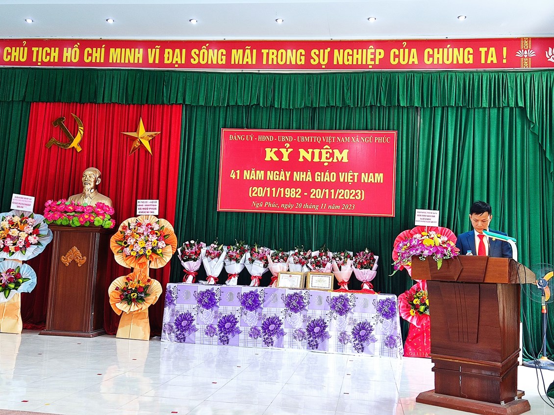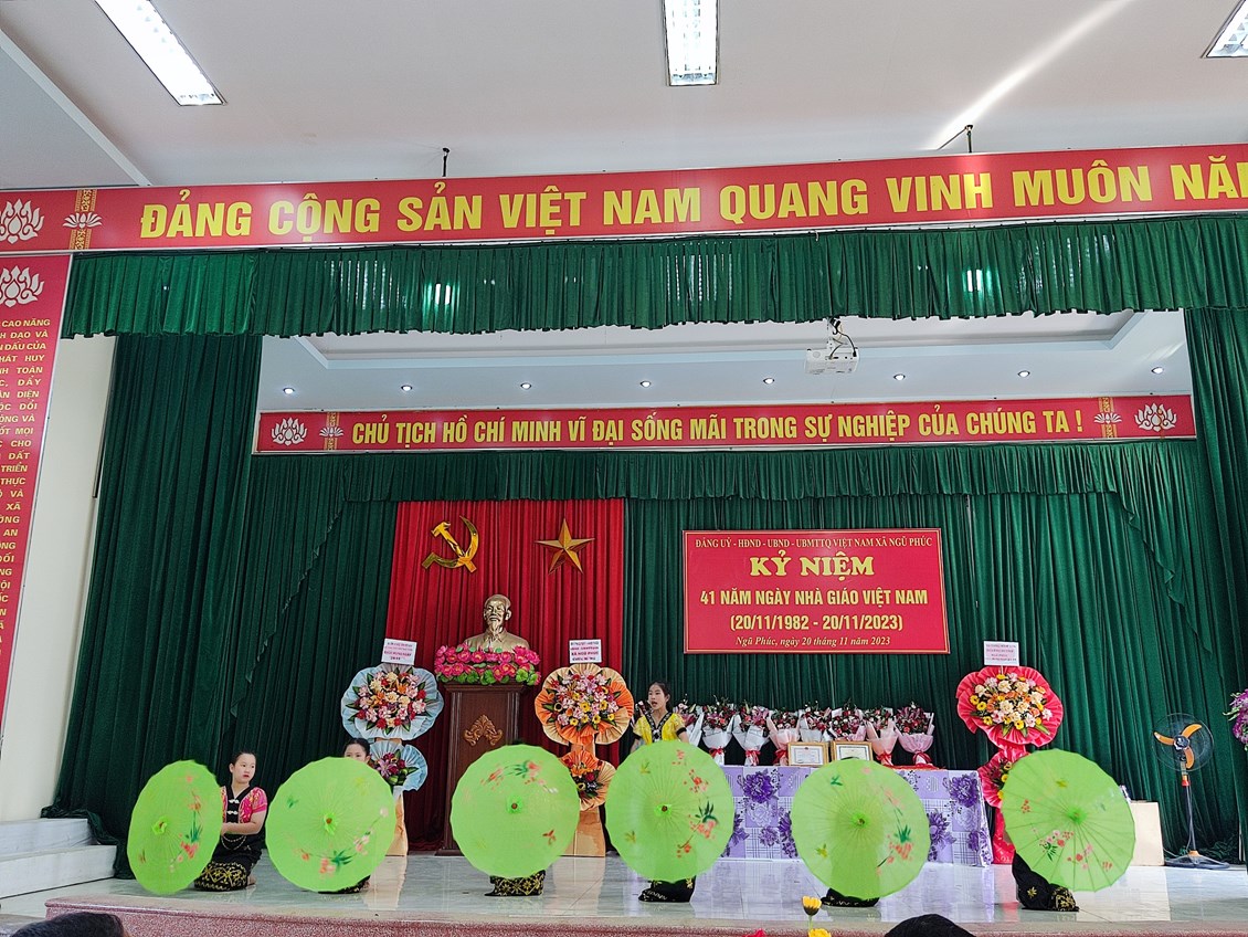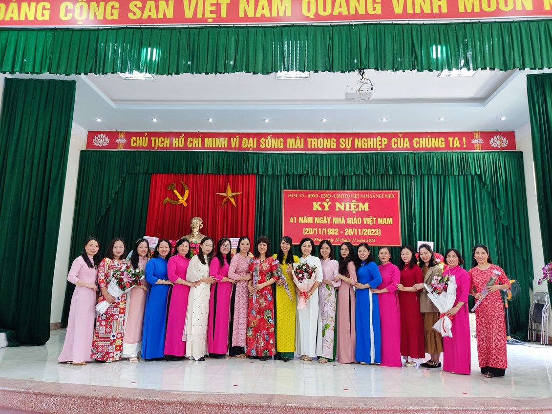 Hòa trong không khí cả nước chào mừng 41 năm ngày Nhà giáo Việt Nam (20/11/1982 - 20/11/2023). Sáng ngày 20/11, trường Tiểu học Ngũ Phúc cùng với trường Mần non và Trung học cơ sở Ngũ Phúc vui mừng tổ chức “Kỷ niệm ngày Nhà giáo Việt Nam" nhằm ôn lại truyện thống cao đẹp của nghề dạy học, tôn vinh và tỏ lòng biết ơn sâu sắc đối với thế hệ các thầy cô giáo trong sự nghiệp trồng người. Đến dự với chương trình kỷ niệm có sự góp mặt của: