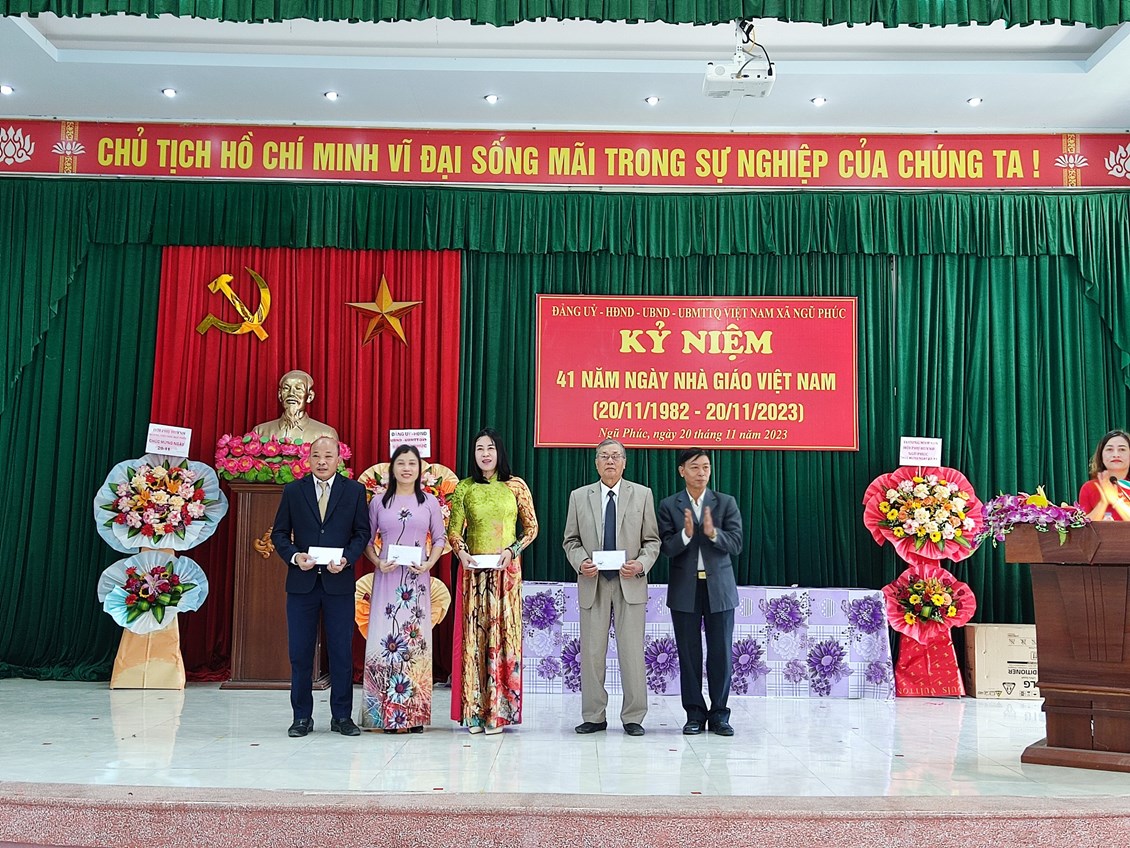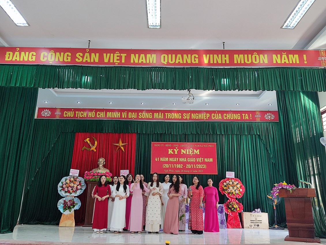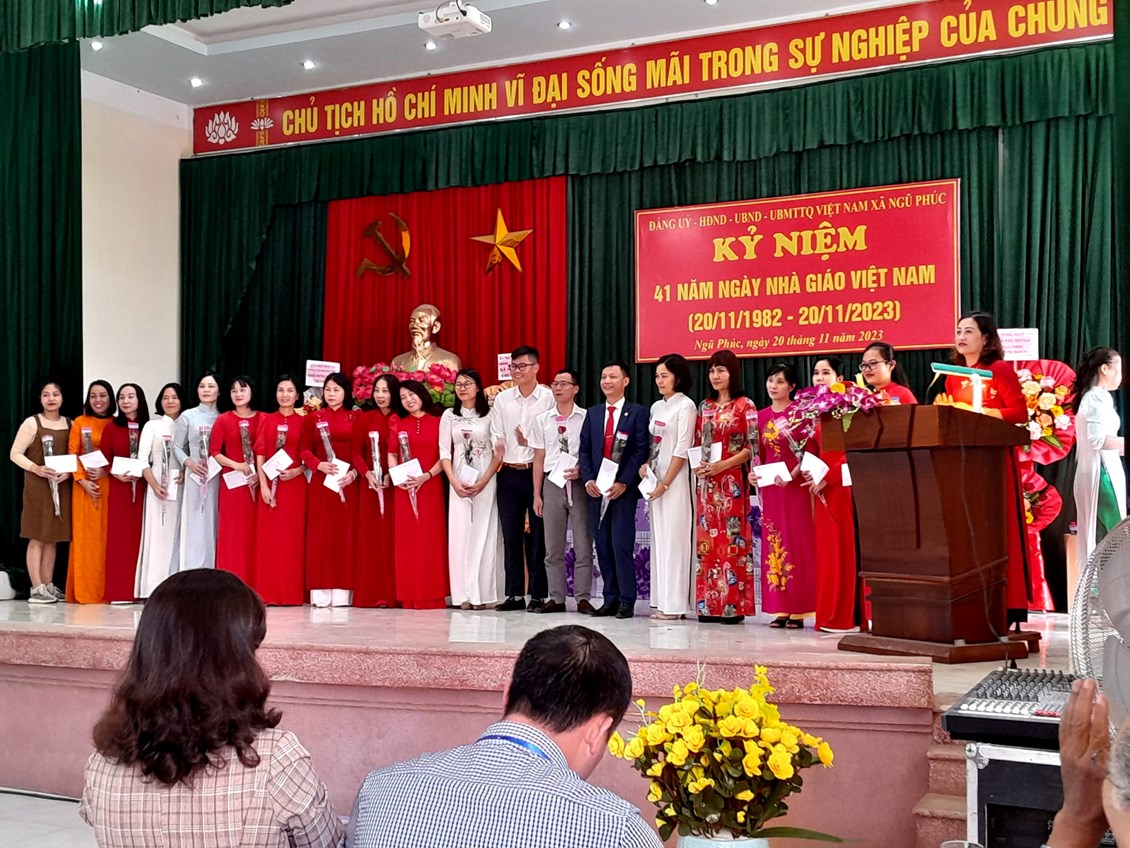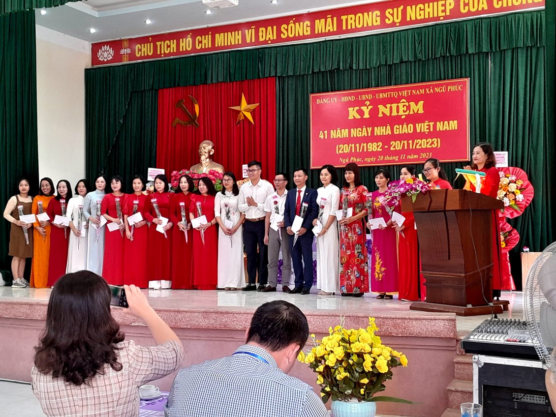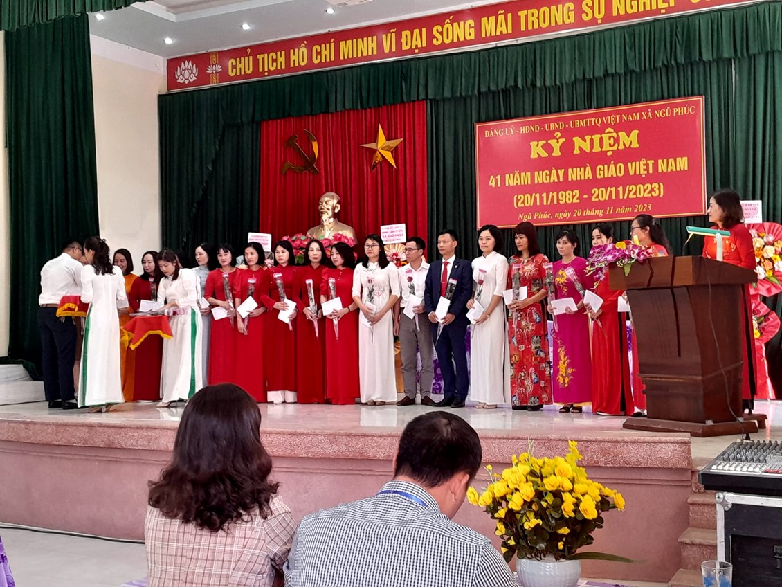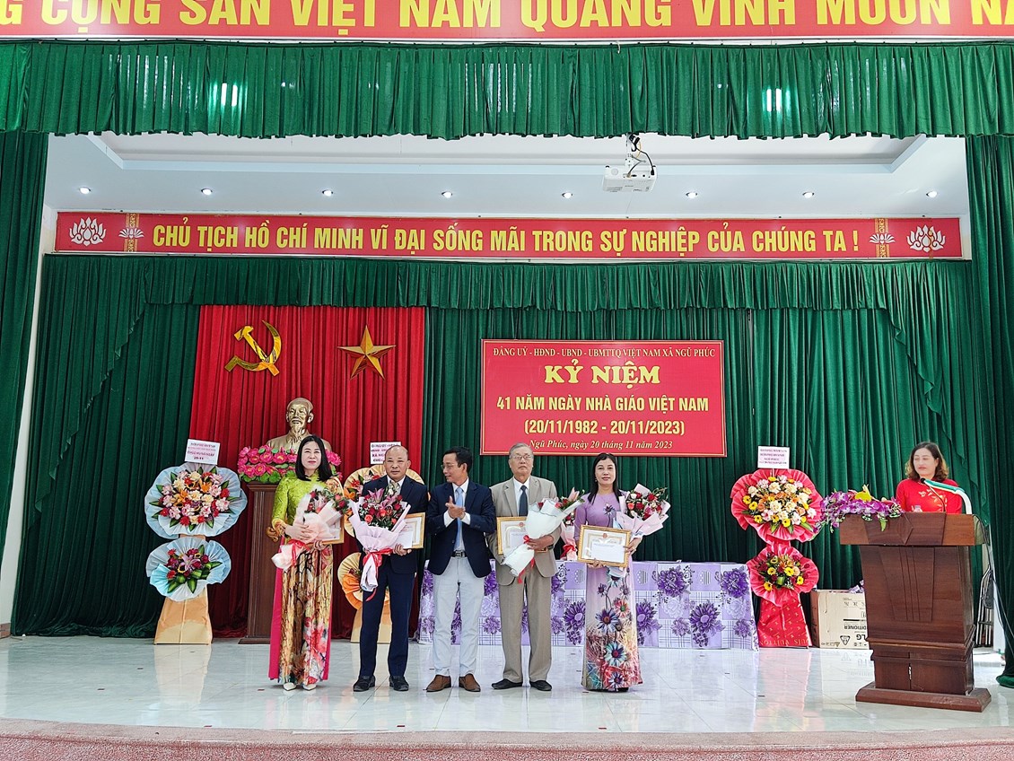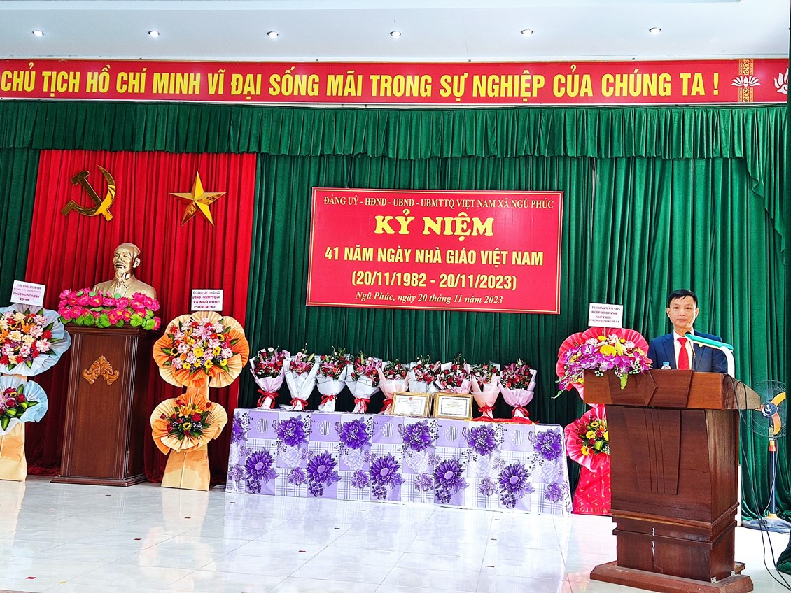 Hòa trong không khí cả nước chào mừng 41 năm ngày Nhà giáo Việt Nam (20/11/1982 - 20/11/2023). Sáng ngày 20/11, trường Tiểu học Ngũ Phúc cùng với trường Mần non và Trung học cơ sở Ngũ Phúc vui mừng tổ chức “Kỷ niệm ngày Nhà giáo Việt Nam" nhằm ôn lại truyện thống cao đẹp của nghề dạy học, tôn vinh và tỏ lòng biết ơn sâu sắc đối với thế hệ các thầy cô giáo trong sự nghiệp trồng người. Đến dự với chương trình kỷ niệm có sự góp mặt của: