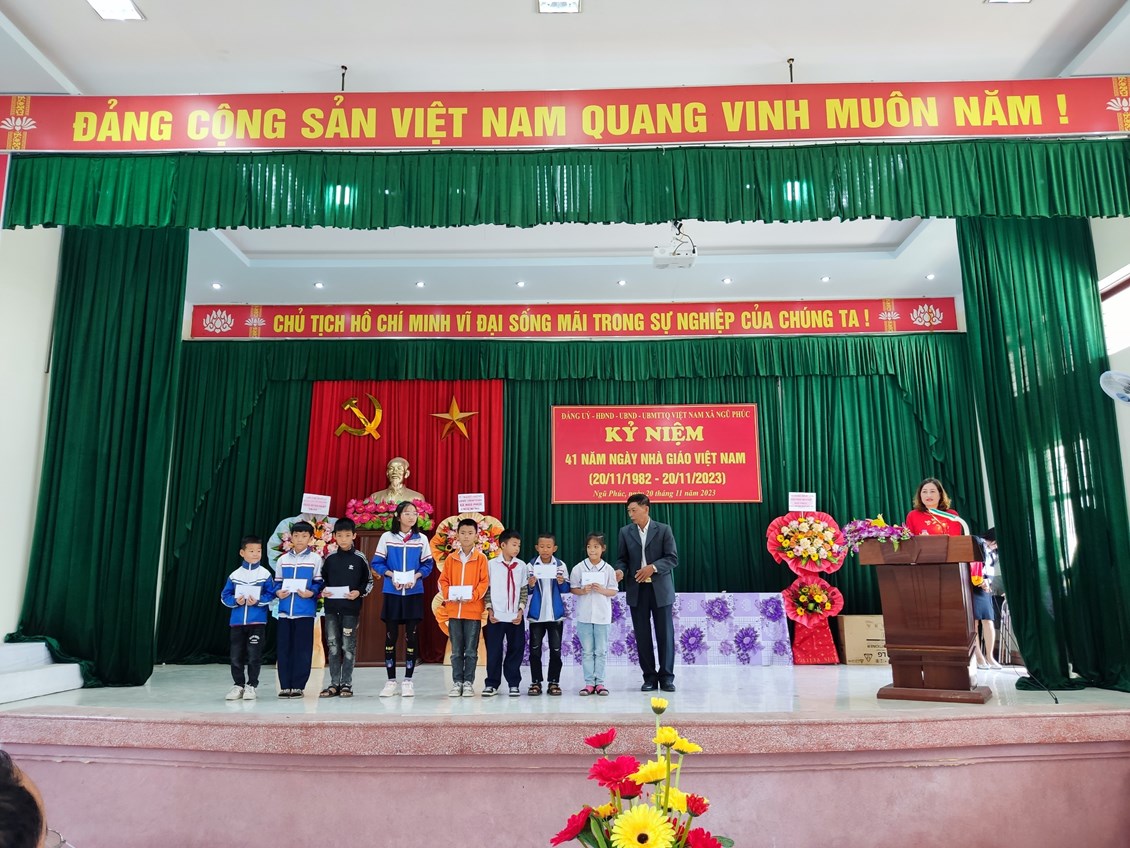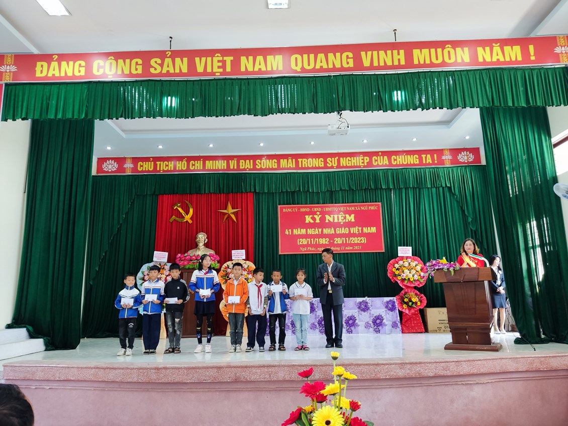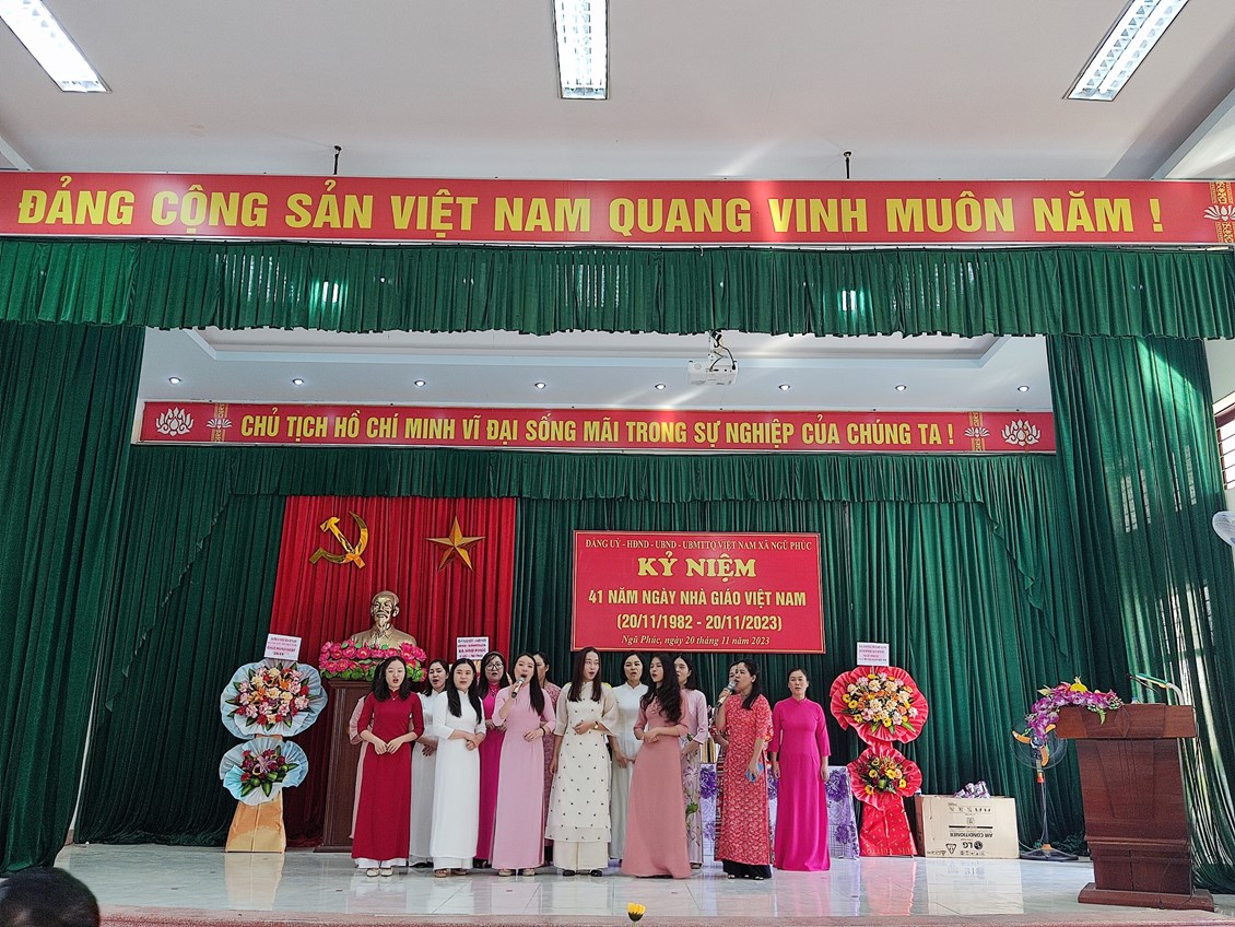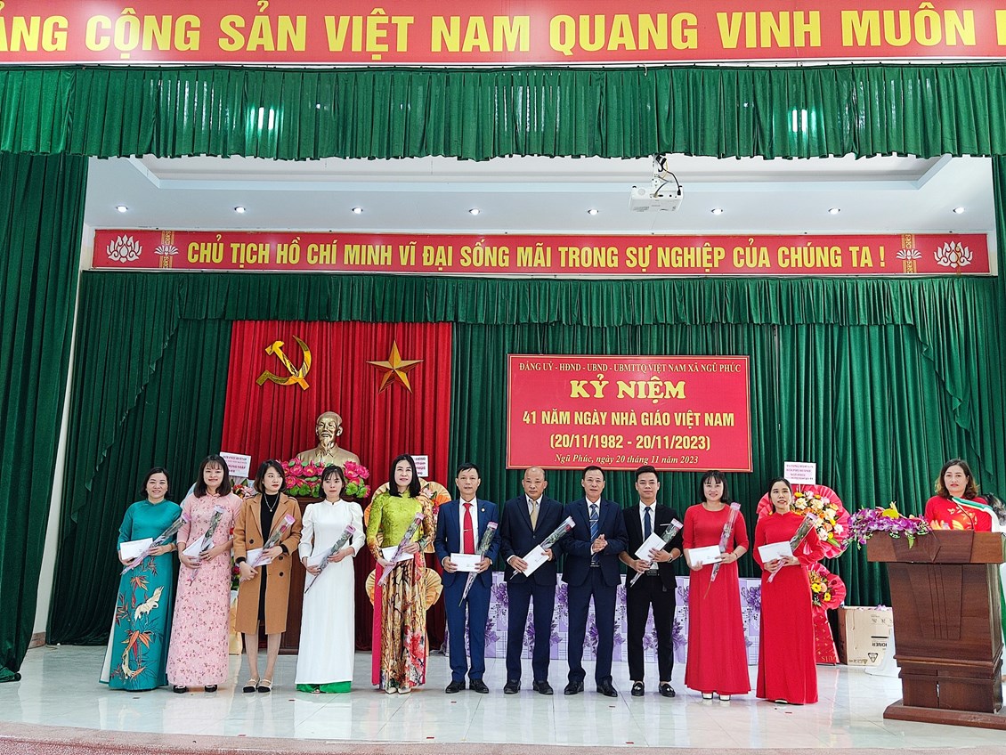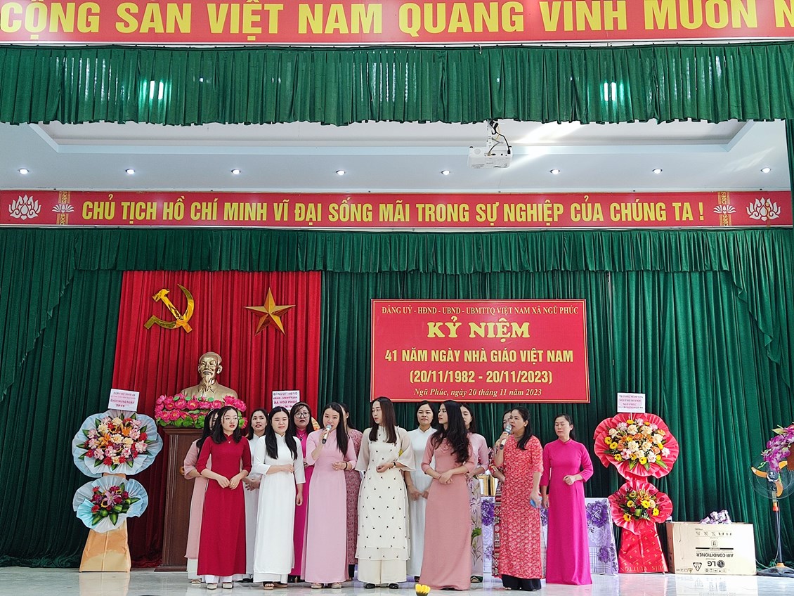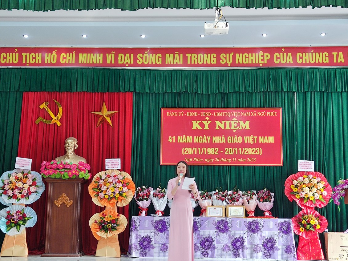 Hòa trong không khí cả nước chào mừng 41 năm ngày Nhà giáo Việt Nam (20/11/1982 - 20/11/2023). Sáng ngày 20/11, trường Tiểu học Ngũ Phúc cùng với trường Mần non và Trung học cơ sở Ngũ Phúc vui mừng tổ chức “Kỷ niệm ngày Nhà giáo Việt Nam" nhằm ôn lại truyện thống cao đẹp của nghề dạy học, tôn vinh và tỏ lòng biết ơn sâu sắc đối với thế hệ các thầy cô giáo trong sự nghiệp trồng người. Đến dự với chương trình kỷ niệm có sự góp mặt của: