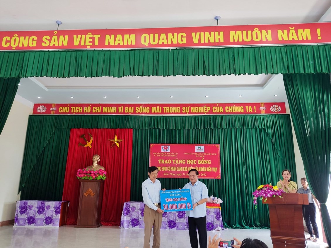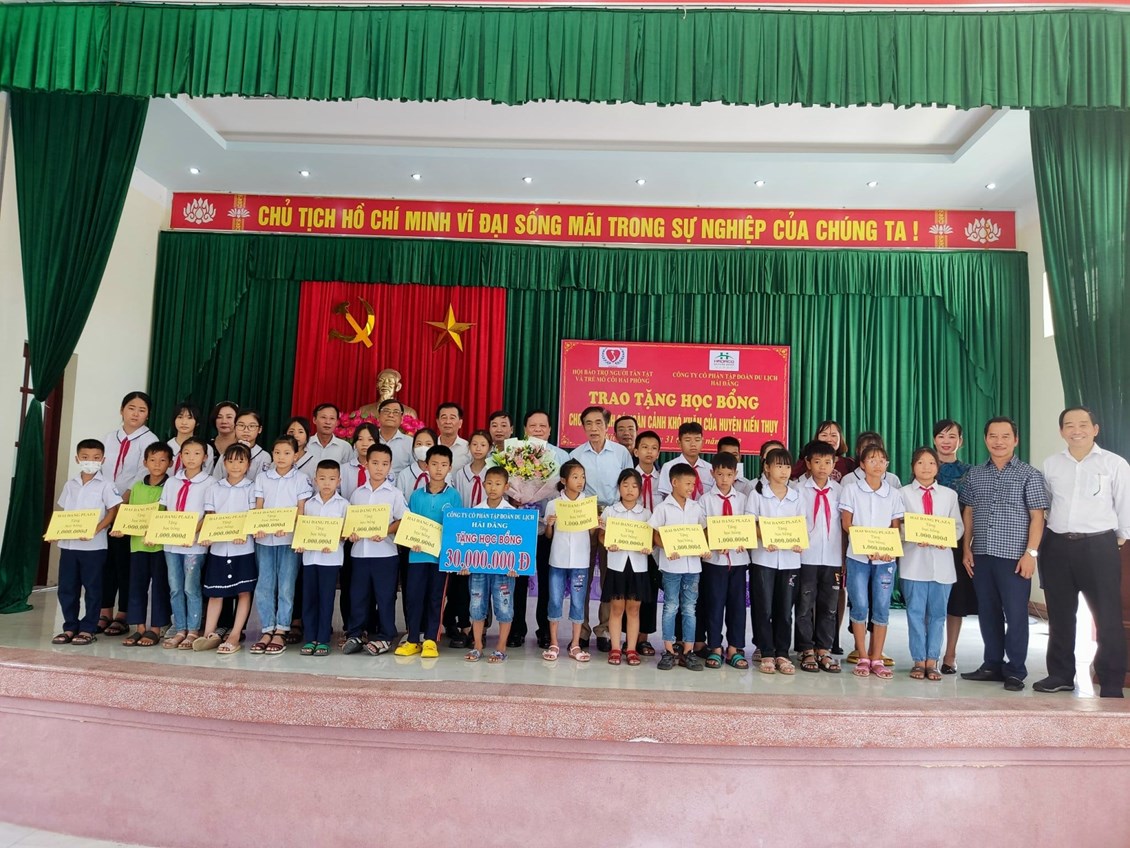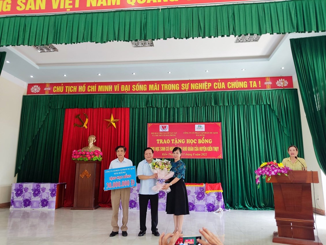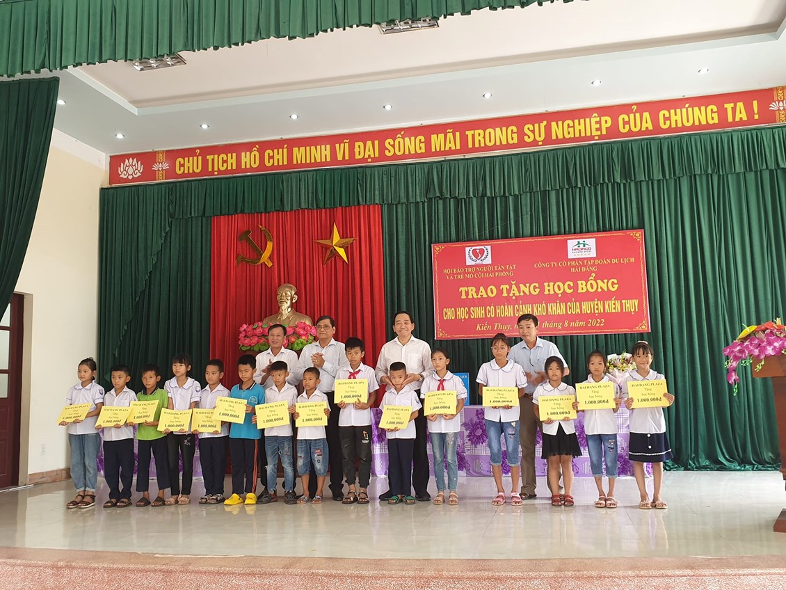 Sáng ngày 31/8/2022 Hội bảo trợ người tàn tật thành phố Hải Phòng phối hợp với công ty cổ phần tập đoàn du lịch Hải Đăng trao tặng 30 suất học bổng cho học sinh có hoàn cảnh khó khăn trường THCS và Tiểu học xã Ngũ Phúc năm học 2021-2022 trị giá 30 triệu đồng.