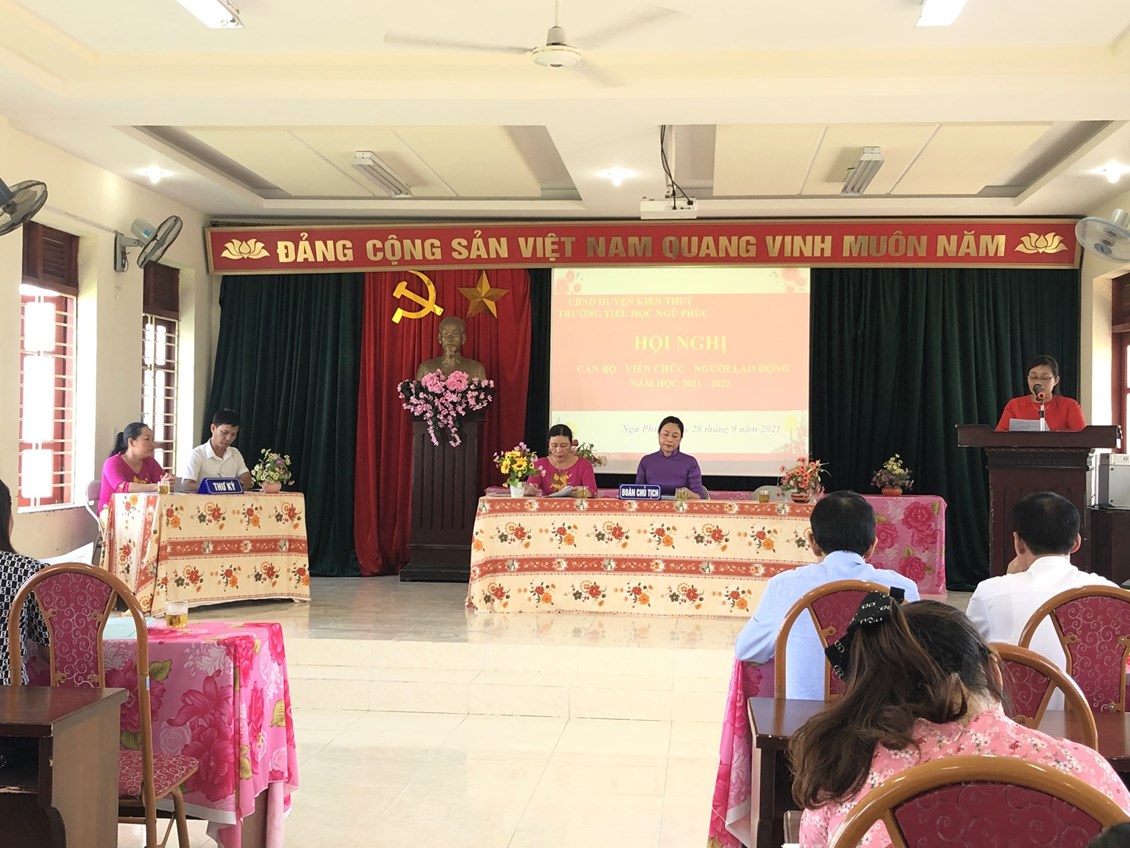 Hội nghị Cán bộ, Viên chức, Người lao động trường Tiểu học Ngũ Phúc được tổ chức vào ngày 28 tháng 9 năm 2021. Tham dự Hội nghị có các Đại biểu đại diện cho địa phương, đại diện Hội cha mẹ học sinh, đồng chí Đặng Thị Liên - Bí thư chi bộ, Hiệu trưởng nhà trường cùng toàn thể cán bộ giáo viên, nhân viên nhà trường.
